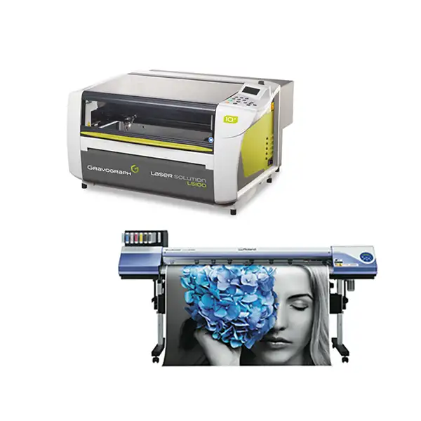 En 2021, l’entreprise renforce ses moyens de production avec une imprimante Roland DG VS540i, un laminateur à froid et une Gravograph LS900 60W, ouvrant la voie à des gravures plus techniques. L’année suivante, en 2022, nous franchissons un palier stratégique : agrandissement des zones de stockage et d’atelier et surtout lancement de notre site e-commerce, qui marque notre entrée dans la vente en ligne. En 2023, nous élargissons encore notre parc machines avec l’acquisition de plusieurs graveurs laser, multipliant les possibilités de découpe et de marquage. En 2024, l’entreprise investit dans de nouvelles imprimantes numériques HD, renforçant notre expertise dans la signalétique grand format et haute définition. Enfin, 2025 constitue un véritable tournant industriel : nous faisons l’acquisition d’une table de découpe Zünd G3 et d’une découpe laser fibre Bodor i-Serie. Ces équipements de dernière génération nous permettent d’élargir considérablement nos capacités de production, de travailler des matériaux plus complexes et d’offrir des solutions de signalétique encore plus personnalisées et techniques.